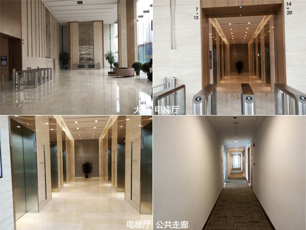 步入大堂那一刻起,充满视觉张力的商务空间感即油然而起。企业广场,一层约600平方米办公大堂,约10米阔绰挑高,营造出宽敞大气之空间格局。高级石材地面、墙面。石膏板艺术吊顶,秉承从视觉感官到切实体验的舒畅感受,让商务精英第一时间感知国际化商务氛围。